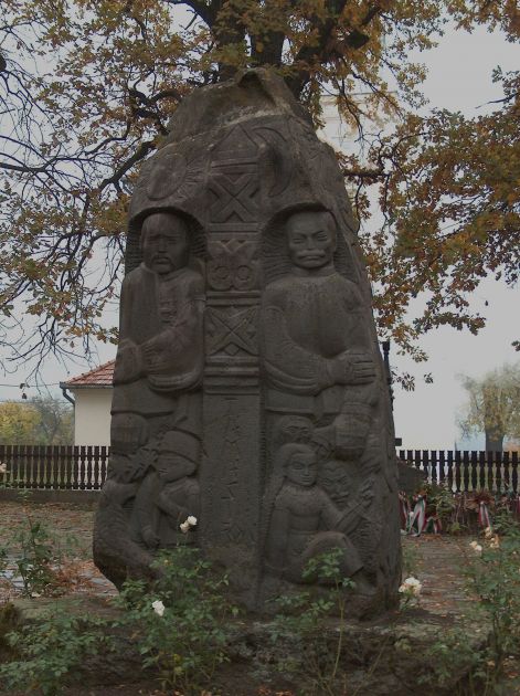 Szervátiusz Jenő és Tibor, apa és fia 1971-ben faragni kezdték az emlékművet a Tizenhétfalusilegelőről hozott 8 tonnányi Úr asztala andezittömbre. A kőböl kiemelkednek a két Tamási testvér és az író műveinek fő alakjai. A faragást a következő évben fejezték be, és az író születésének 75. évfordulóján, 1972 szeptember 14.-én leplezték le.
